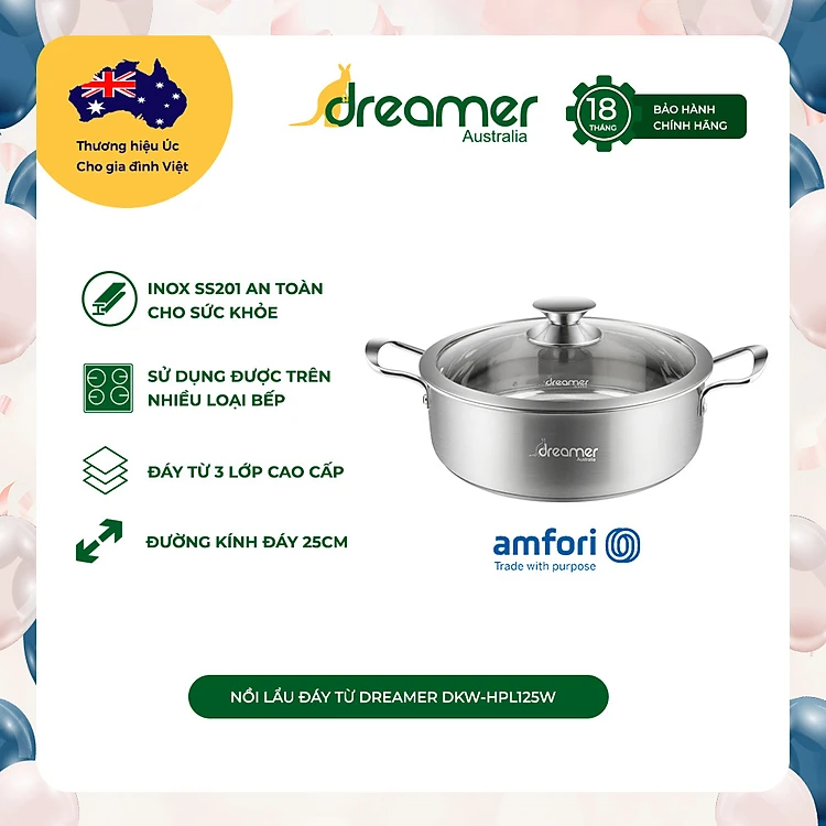 Nồi lẩu inox đáy từ 25cm- Dreamer DKW-HPL125W