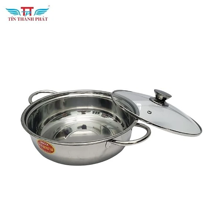 Nồi lẩu inox 430 nắp kiếng quai ống chắc chắn Tín Thành Phát Size 24cm - 26cm, bền bỉ, tiện dụng