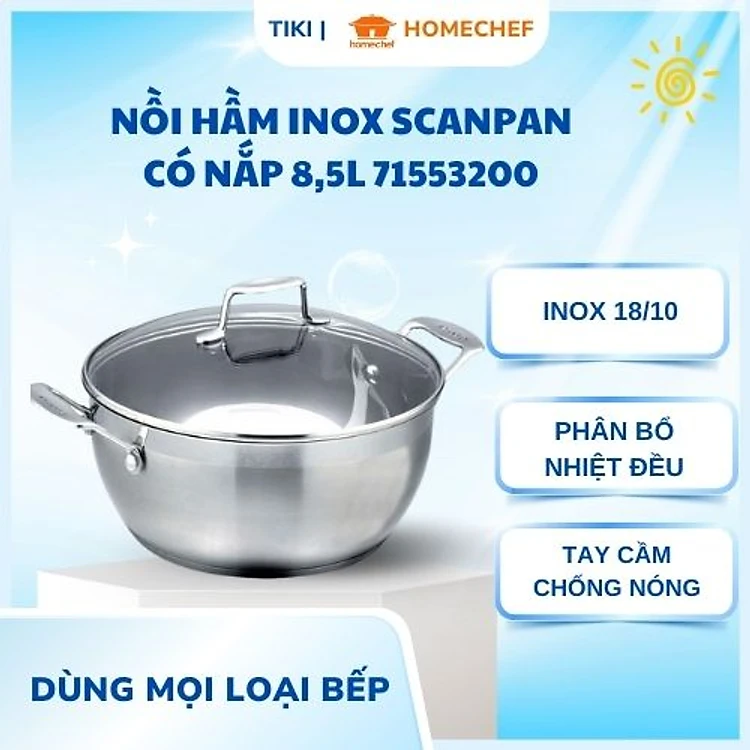 Nồi luộc gà inox 304 cao cấp Scanpan Impact 8.5L/32cm - 71553200, dùng bếp từ, máy rửa bát | Hàng chính hãng