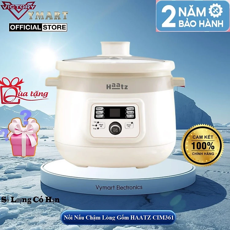 Nồi Nấu Chậm Lòng Gốm HAATZ CIM361 Đa Năng, Dung Tích 3L - 1000W - Hàng Chính Hãng Bảo Hành 2 Năm