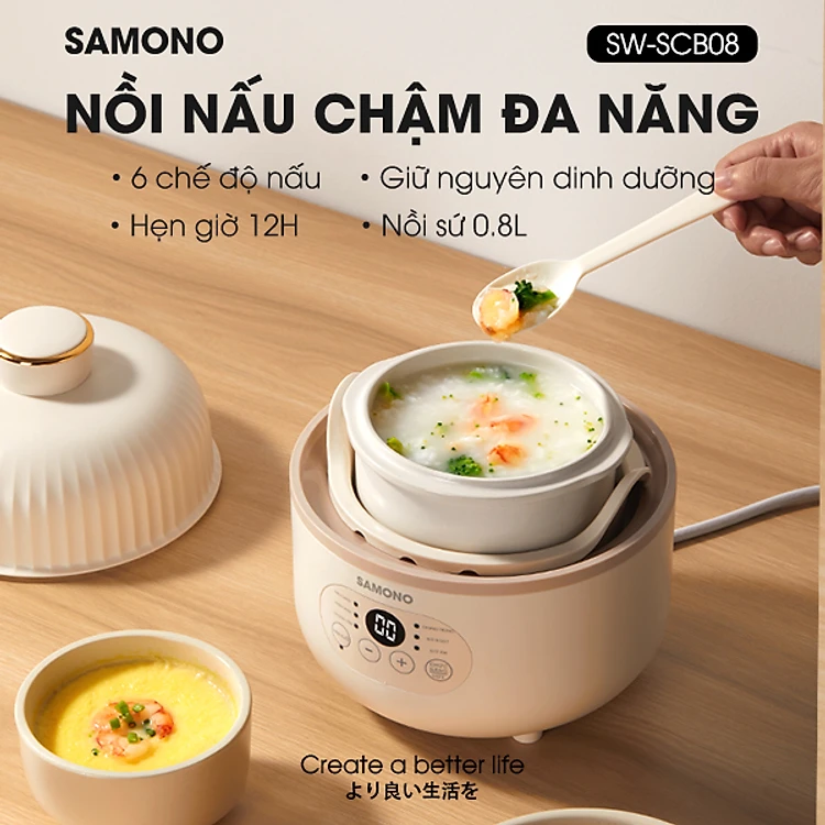 SW-SCB08 là phiên bản nồi chấu chậm cao cấp của nhà SAMONO vừa chính thức giới thiệu với khách hàng tại Việt Nam. So với SW-SC08 thì SCB08 có những tính năng nổi bật