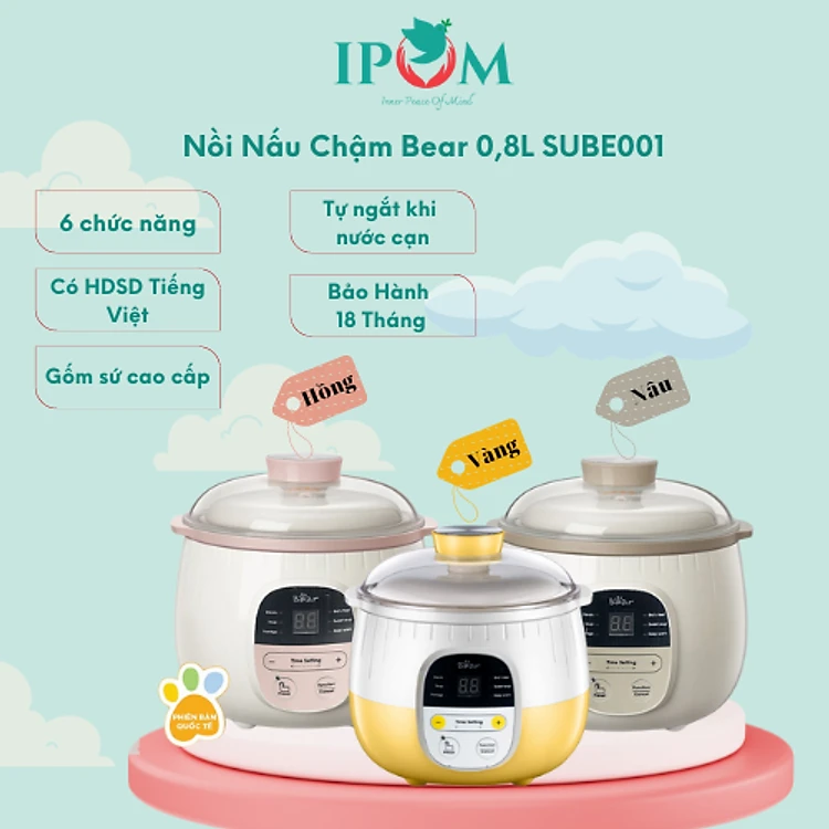 Nồi Nấu Cháo Chậm, Chưng Yến, Ninh Hầm Đa Năng Bear 0,8L SUBE001 - Hàng Chính Hãng, Bản Quốc Tế Bảo Hành 18 Tháng