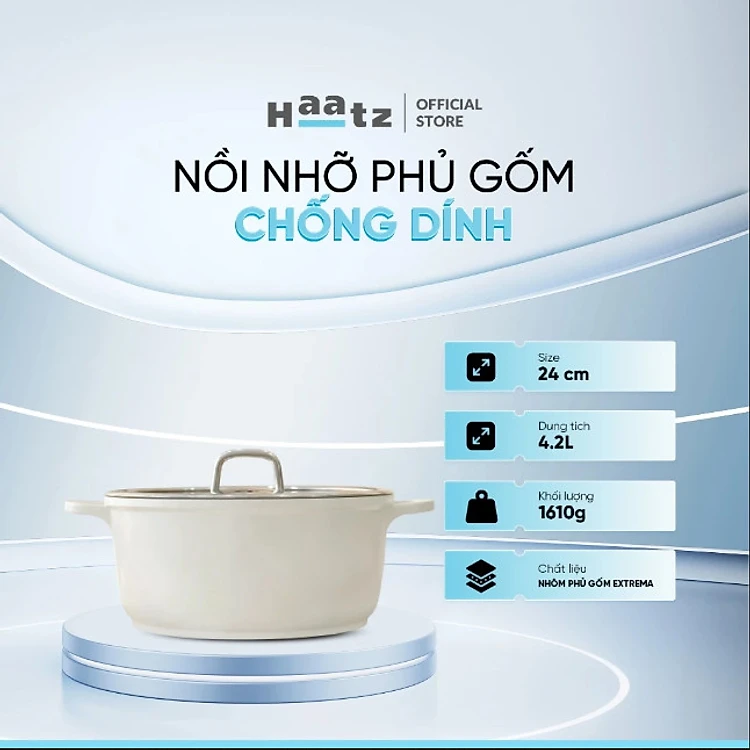 Nồi Phủ Gốm Xtrema Chống Dính 24cm Haatz HCP724 Dùng mọi loại bếp, An toàn, Hàng Chính Hãng Bảo Hành 24 tháng