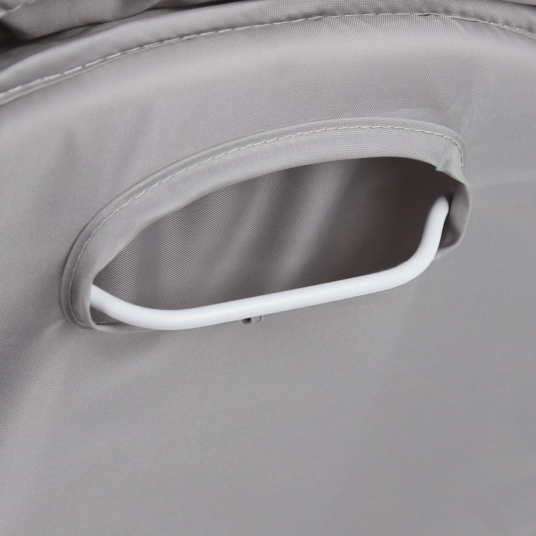 Thanh chắn treo đồ chơi trước ghế được bọc vài cẩn thận tránh những tổn thương lên làn da của bé. Thanh chắn có thể tháo rời tiện dụng khi mẹ cho bé ăn hay cho bé ngủ.