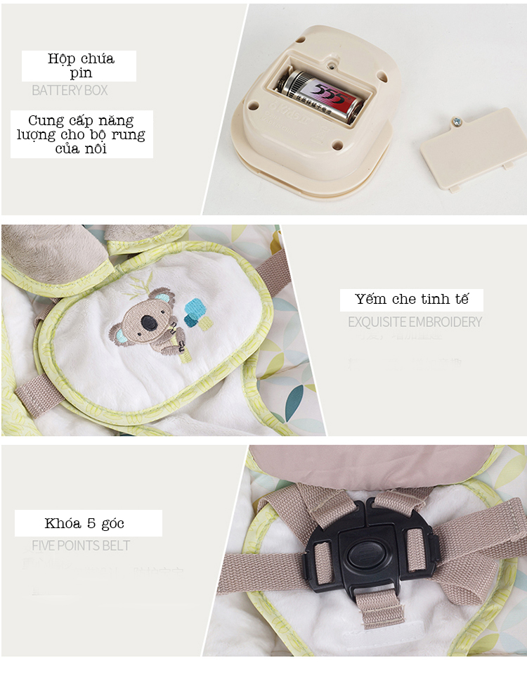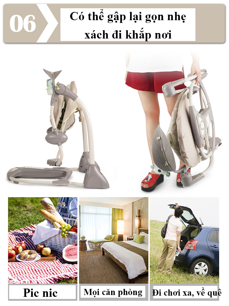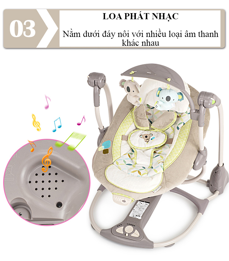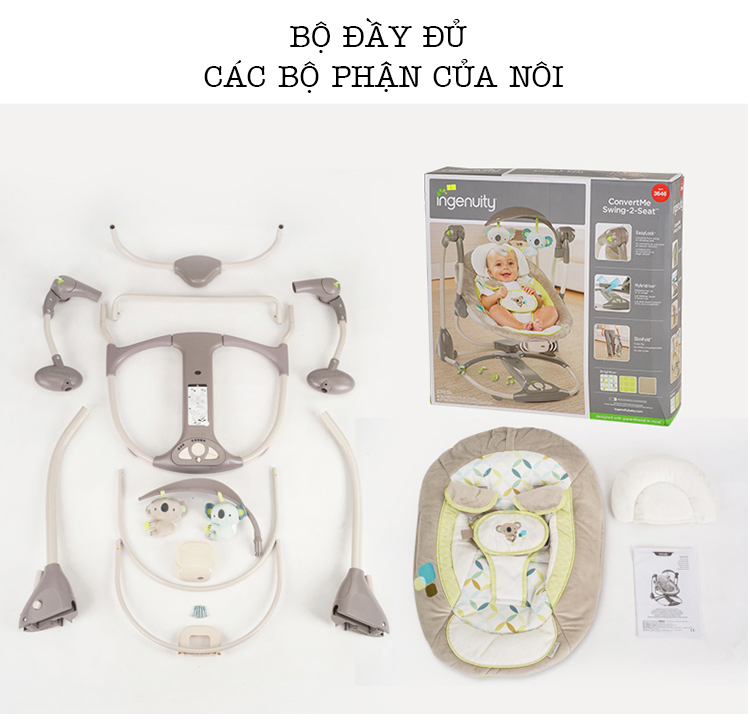 Nôi rung Ingenuity có thiết kế sang trọng có thể tháo rời và di chuyển. Có 2 chức năng, rung nhẹ hoặc đưa nhẹ, bạn có thể chuyển đổi giữa 6 tốc độ để phù hợp với bé. Động cơ yên tĩnh kết hợp với nhạc nhẹ nhàng. Sản phẩm có thể gập lại dễ dàng di chuyển từ phòng này sang phòng khác hoặc mang ra ngoài.