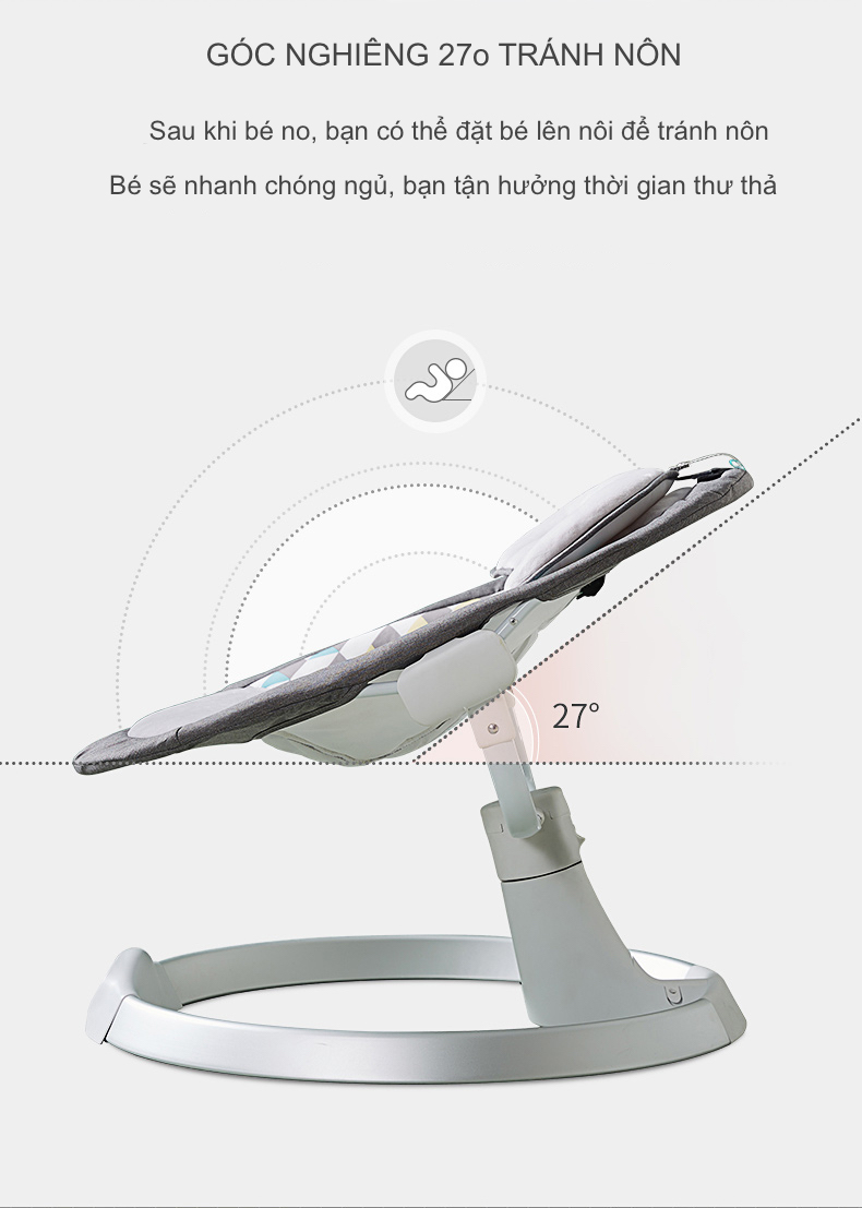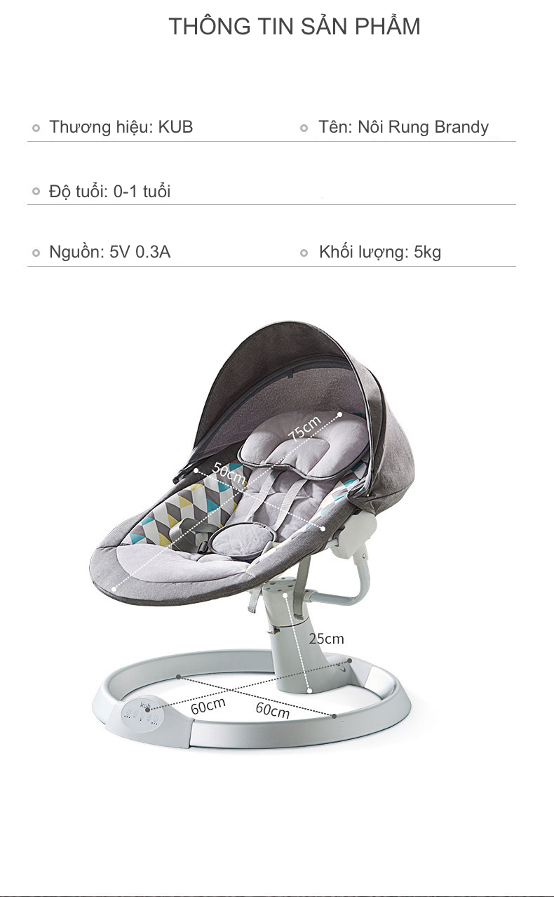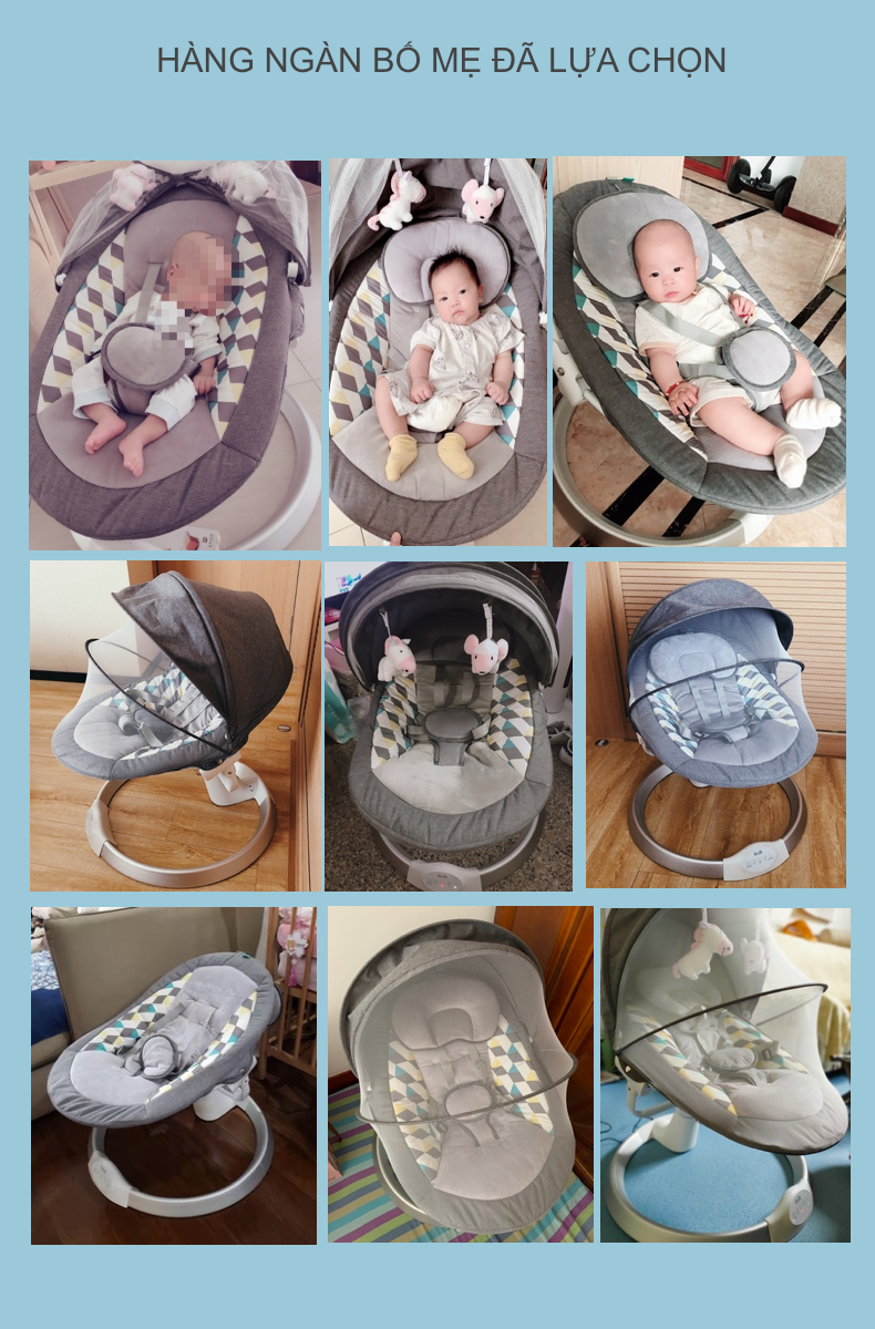 Nôi Rung Tự Động Brandy - 5 Tốc Độ, Điều Khiển Từ Xa, Hẹn Giờ, Phát Nhạc Qua Bluetooth, Kèm Màn Chống Muỗi Và Thú Bông