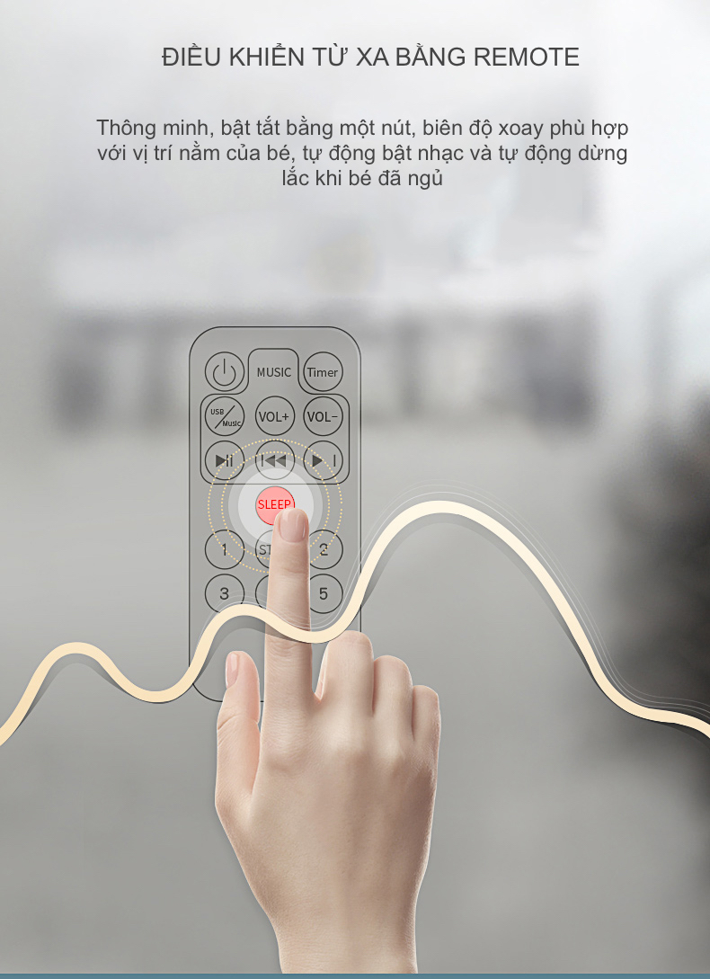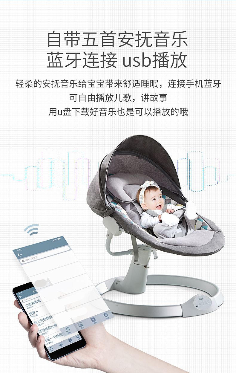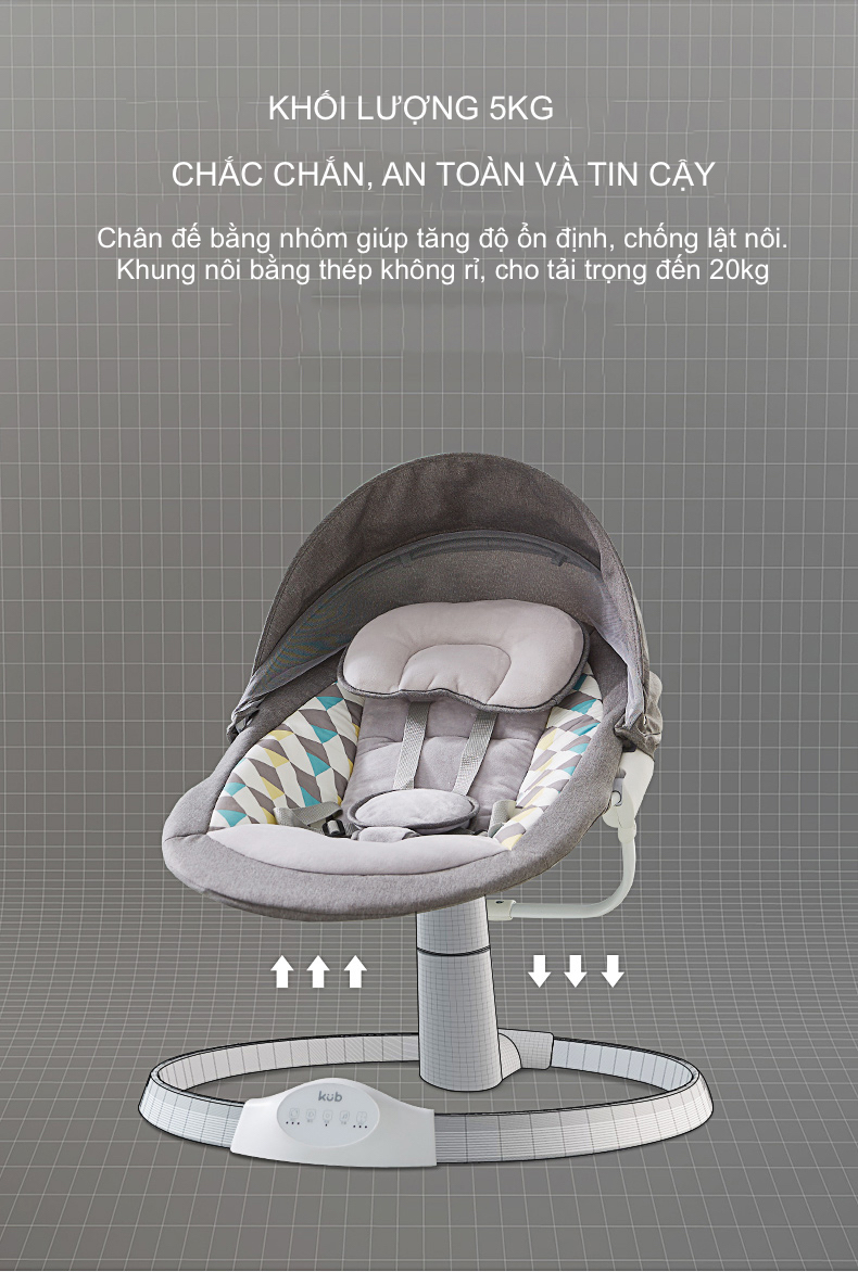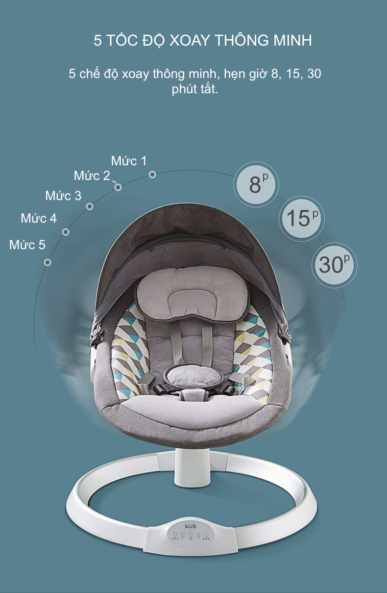 Nôi Rung Tự Động Brandy - 5 Tốc Độ, Điều Khiển Từ Xa, Hẹn Giờ, Phát Nhạc Qua Bluetooth, Kèm Màn Chống Muỗi Và Thú Bông