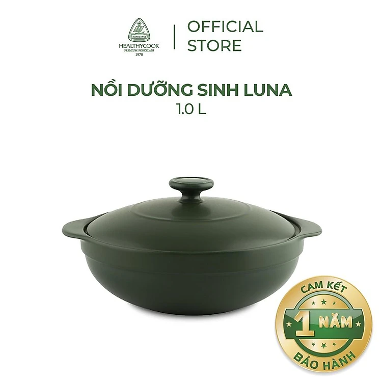 NỒI DƯỠNG SINH LUNA 1.0L + NẮP - HEALTHYCOOK - XANH RÊU