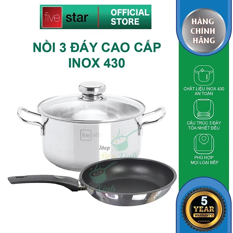 Nồi và chảo chống dính 3 đáy từ inox 430 FiveStar Standard nắp kính (16cm/20cm/24cm ) , dùng được mọi bếp