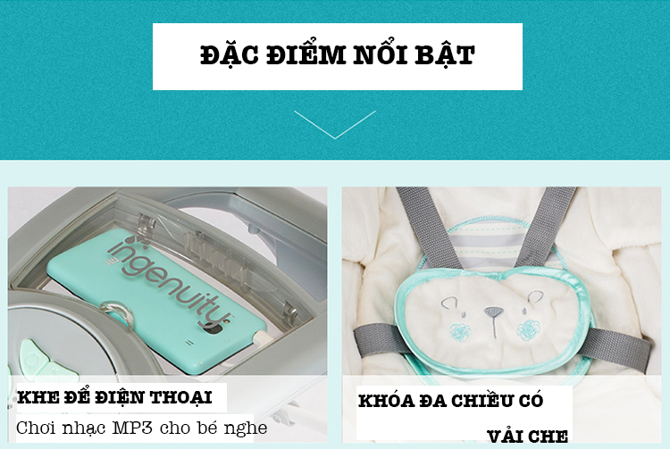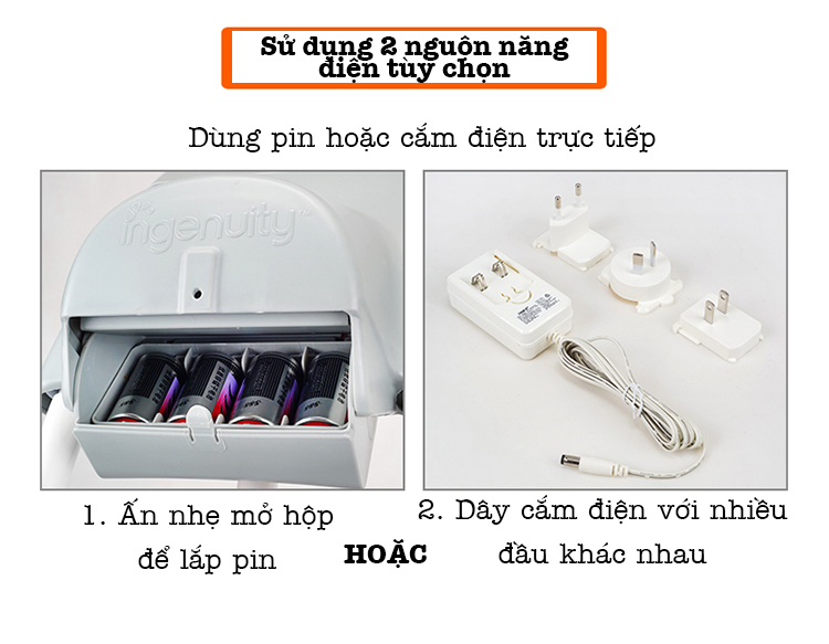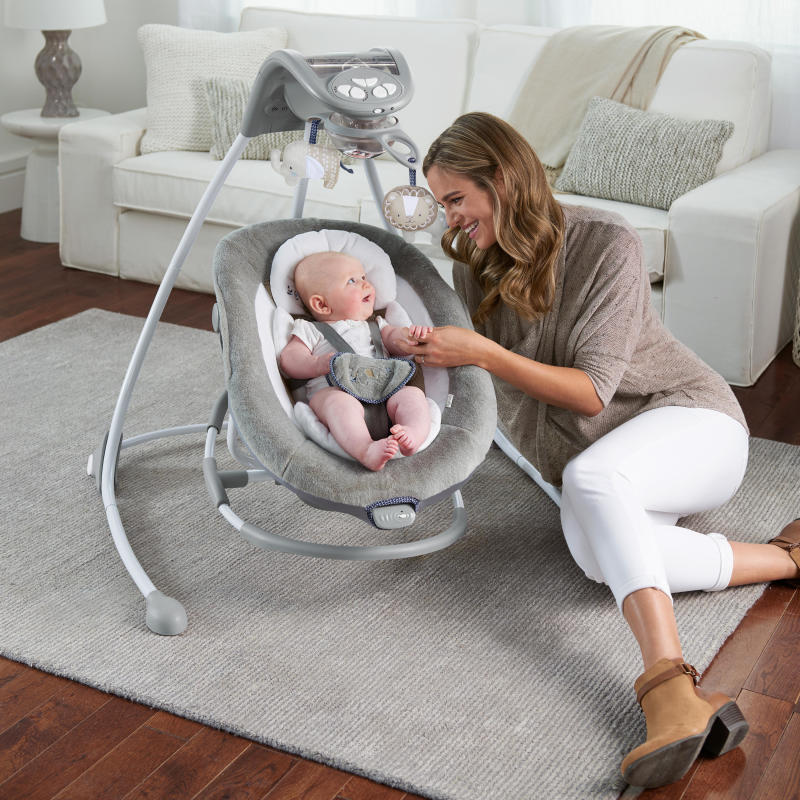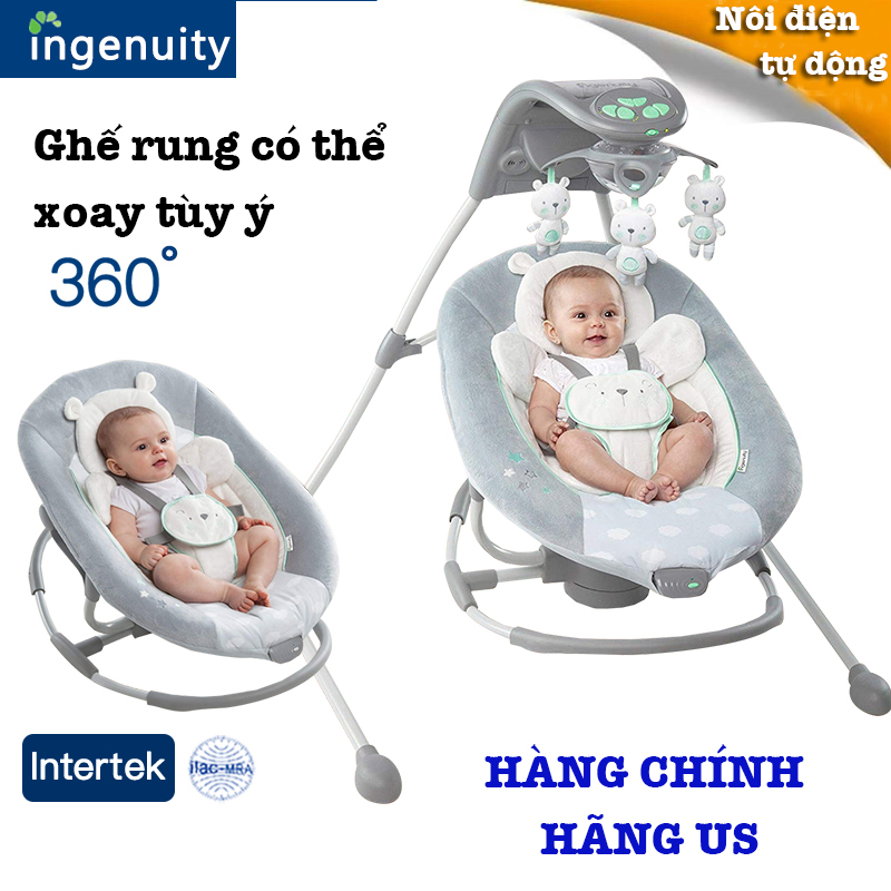 Ghế rung Ingenuity Twinkle Tails có thiết kế sang trọng có thể tháo rời và chuyển đổi thành ghế rung bập bênh riêng cho bé . Có 2 chế độ, xoay hoặc lắc đều, trong chế độ xoay, bạn có thể chuyển đổi giữa 6 tốc độ để phù hợp với bé. Với bộ chuyển đổi nguồn AC, bạn có thể dễ dàng cắm điện trực tiếp hay có thể dùng pin dự phòng. Động cơ yên tĩnh kết hợp với nhạc nhẹ nhàng. Sản phẩm có thể gập lại dễ dàng di chuyển từ phòng này sang phòng khác hoặc mang ra ngoài.