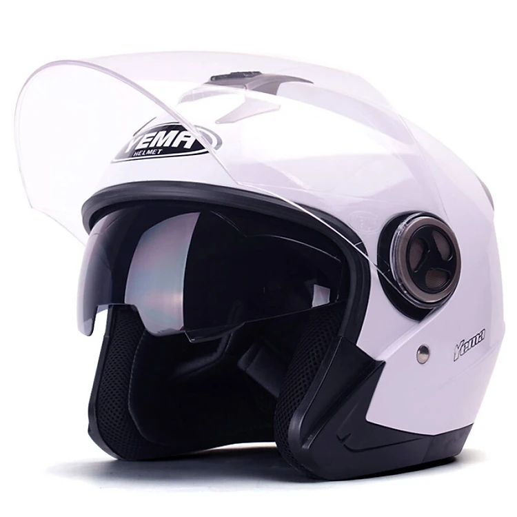 - Với thiết kế 2 kính có tính năng chống chói tốt, Nón bảo hiểm Yema thuận tiện cho việc sử dụng cả ban ngày lẫn ban đêm.