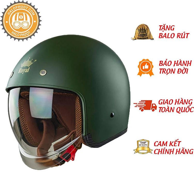 Nón bảo hiểm Royal kính âm M139 xanh lính
