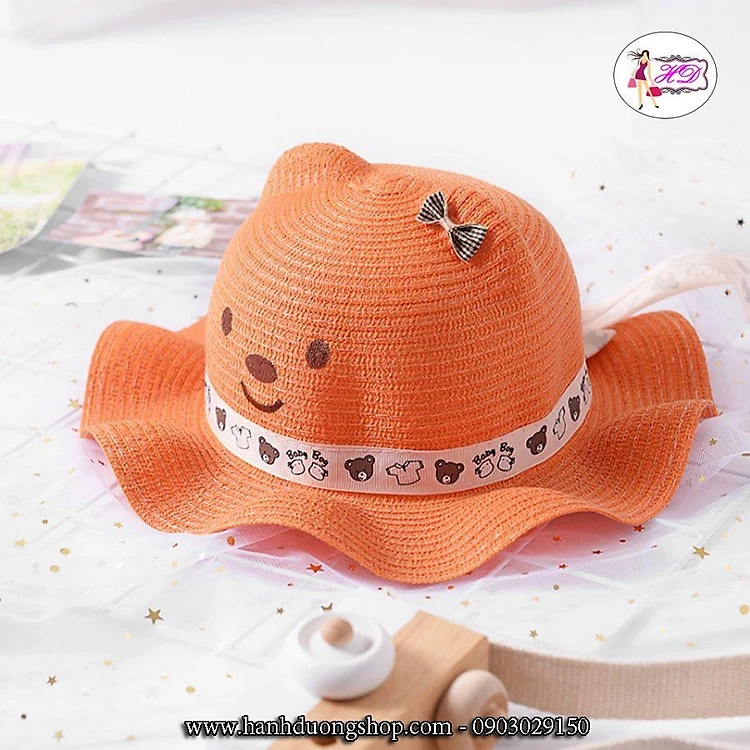Nón cói trẻ em vành gợn sóng hình mặt heo HQC210