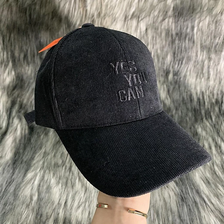 Nón Kết Ulzzang Vải Nhung Nỉ/ Mũ Lưỡi Trai Thêu YES YOU CAN