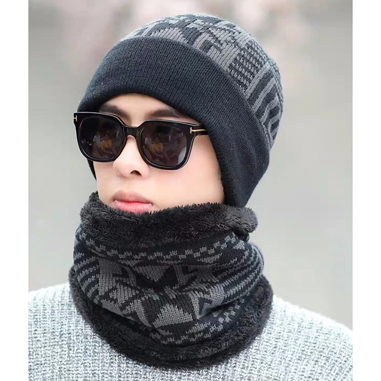 NÓN MŨ LEN NAM PATTERN KÈM KHĂN CHOÀNG THỜI TRANG HÀN QUỐC DN19112403