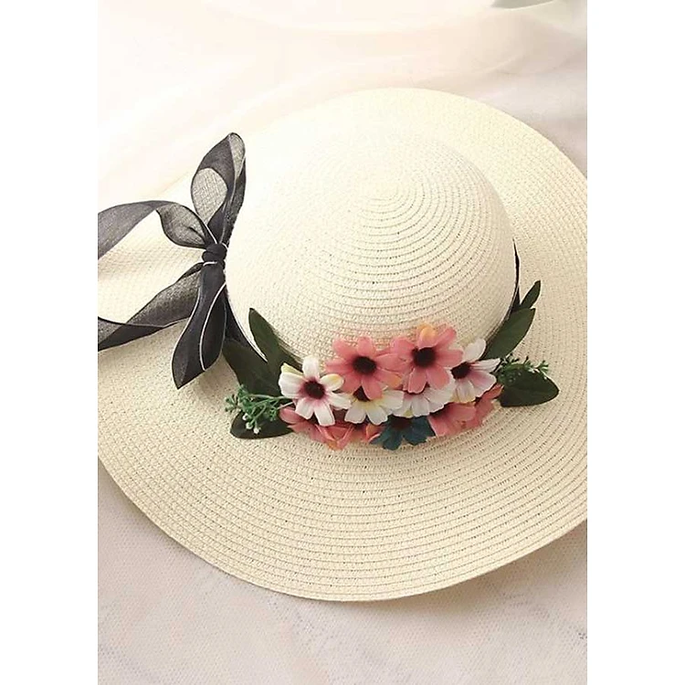 Nón rộng vành đi biển hoa và lá đẹp mắt HQC4129