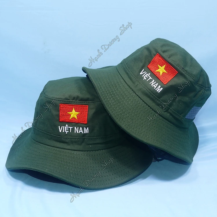 Nón tai bèo nam rộng vành thêu lá cờ Việt Nam, chất liệu vải kaki bền đẹp, bên hông có 2 lỗ thông gió - Hạnh Dương