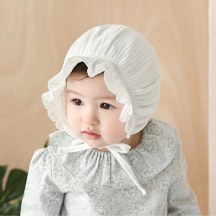 - Nón làm bằng vải ren mềm mại, thoáng mát cho bé.