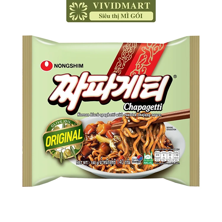 NONGSHIM - Mì trộn tương đen Chapagetti hương vị Không cay, Mì tương đen không cay gói, Mì Hàn Quốc (140g/gói)