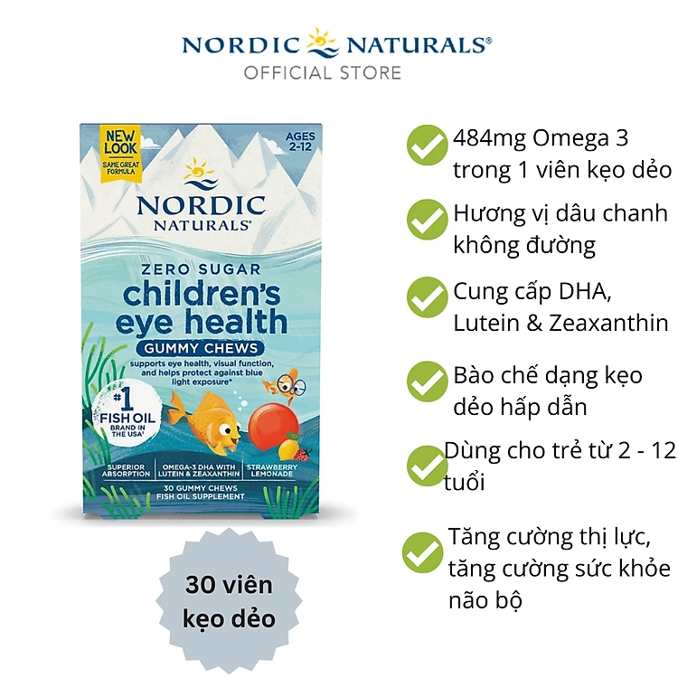 Nordic Naturals Children's Eye Health Gummies - Kẹo dẻo Omega3, DHA tăng cường thị lực cho trẻ em, vị trái cây tự nhiên, hộp 30 viên - Hàng Chính Hãng