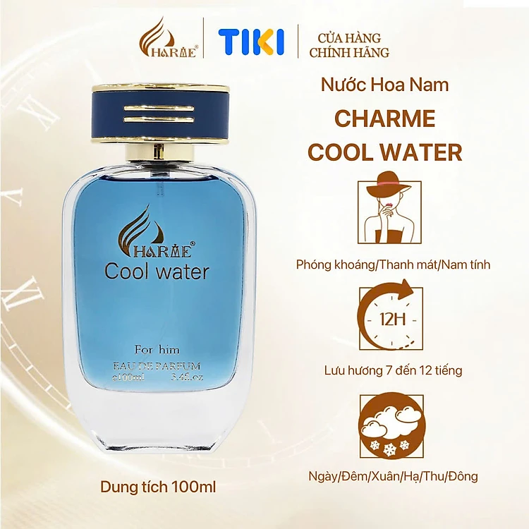 Nước Hoa Nam CHARME COOL WATER BẢN MỚI 2024 100ml Lưu Hương Lâu Thơm Mát, Mạnh Mẽ và Thanh Lịch Cho Các Quý Ông