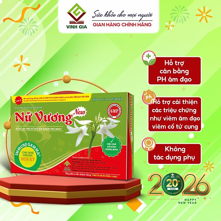 Nữ Vương New Vinh Gia Hỗ Trợ Cân Bằng PH Vùng Nhạy Cảm, Giảm Khí Hư, Ngứa Vùng Nhạy Cảm, Phòng Ngừa Các Bệnh Phụ Khoa Hộp 30 Viên