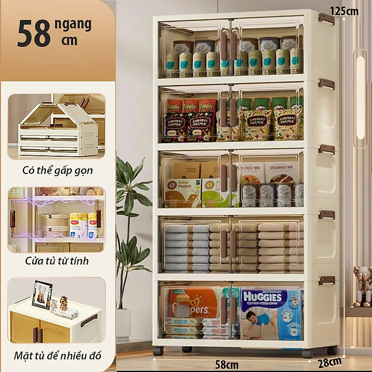 Nubie Tủ Nhựa Gấp Gọn Ngang 58cm, Tủ Đựng Đồ Đa Năng Lắp Ghép, Hộp Đựng Quần Áo, Nhựa PP, Có Bánh Xe
