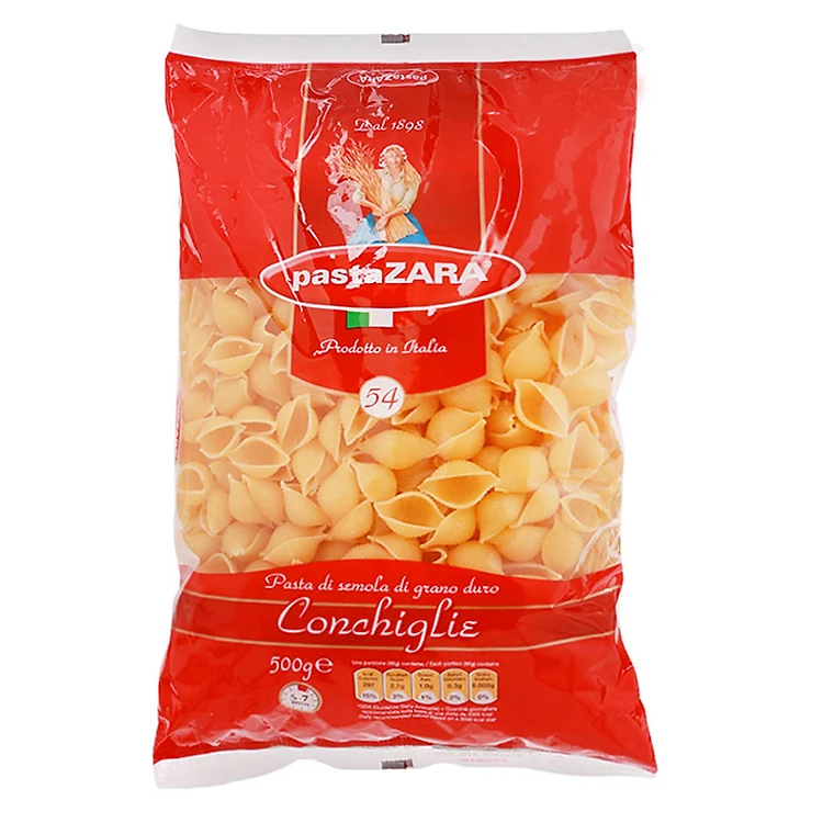 - Nui Ý Hình Sò 54 Pasta Zara được kiểm định nghiêm ngặt và đã tuân thủ các quy định về dinh dưỡng, hoàn toàn an toàn cho sức khỏe. Nui với thành phần giàu năng lượng, tinh bột, đạm và chất béo. Sản phẩm với đầy đủ thành phần dinh dưỡng, đảm bảo đáp ứng đầy đủ tất cả các nhu cầu dinh dưỡng của gia đình.