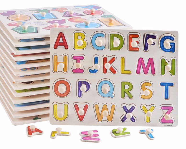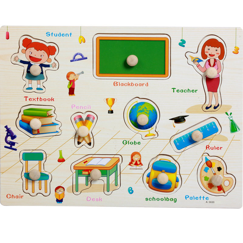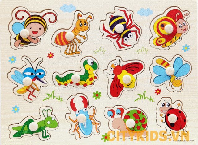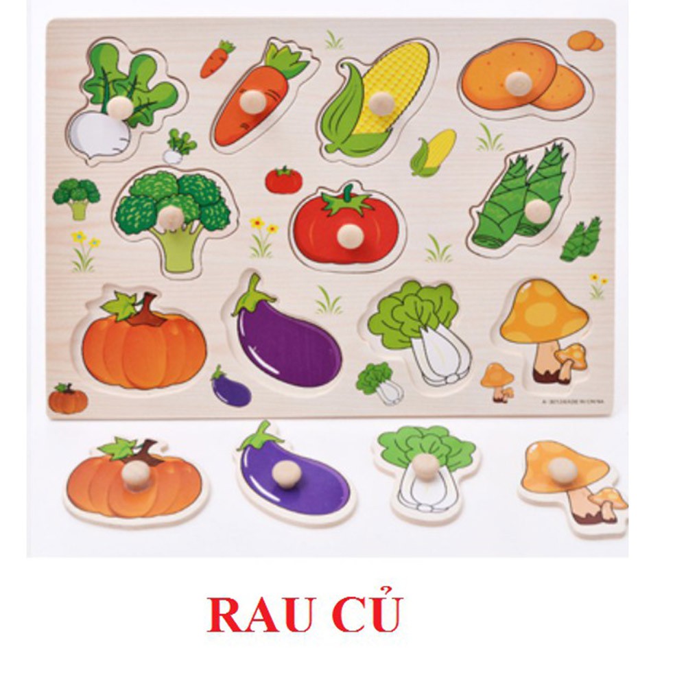 Tên Sản Phẩm: Bảng Chữ, Số, động vật, rau củ, quả, lớp học, côn trùng, hình học, phương tiện giao thông Có Núm Gỗ Cho Bé