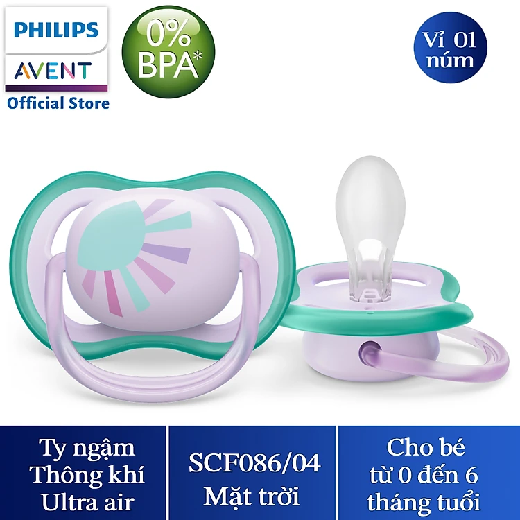 Núm ty ngậm thông khí Philips Avent (vỉ đơn) cho bé 0-6 tháng