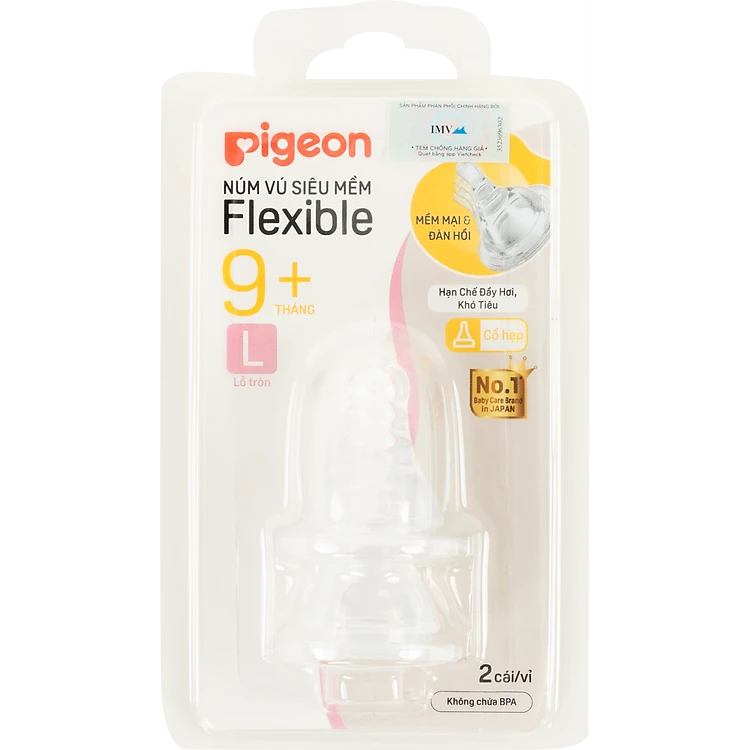 Núm vú cổ hẹp silicone siêu mềm Pigeon (2 cái/vỉ)