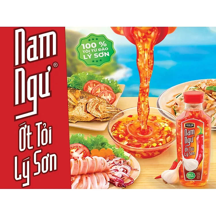 - Nước Chấm Nam Ngư Tỏi Ớt Chai 300ml làm từ 100% tỏi đảo Lý Sơn cùng vị chua ngọt, cay the hấp dẫn, phù hợp với nhiều món ăn. Nước chấm Nam Ngư là loại nước chấm pha sẵn, kết hợp cùng các loại gia vị tươi ngon, phù hợp với các món ăn theo khẩu vị người Việt.