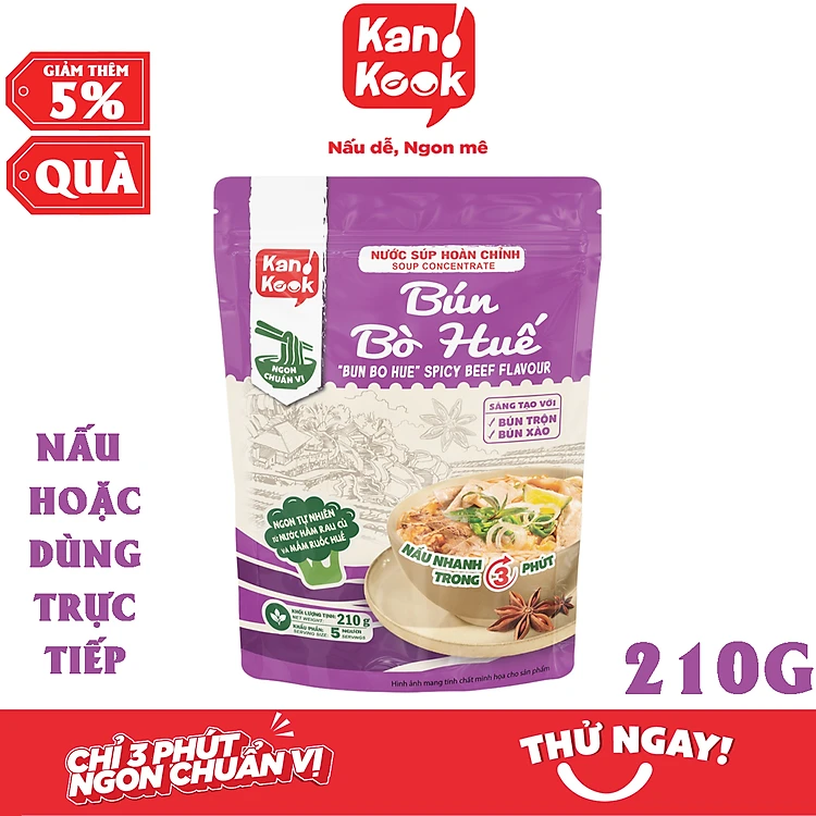 Nước Cốt Cô Đặc Vị Bún Bò Huế KanKook Gói 210g Nấu/Trộn Ăn Liền Vị Hoàn Chỉnh Chuẩn Vị Bún Bò Huế