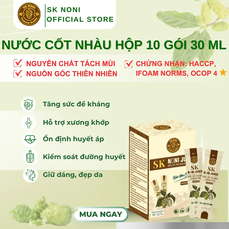 Nước Cốt Trái Nhàu SK NONI gói tiện lợi giúp BẢO VỆ SỨC KHOẺ, TĂNG ĐỀ KHÁNG, HỖ TRỢ ĐẸP DA