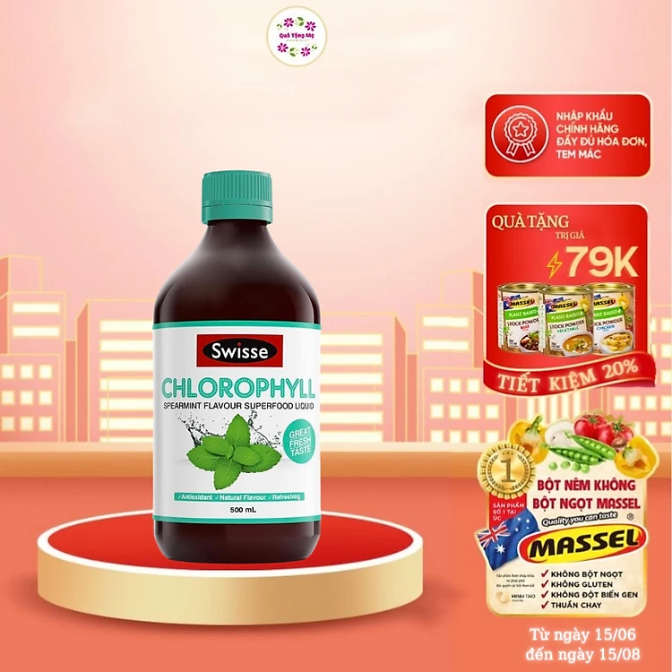 - Chúng ta nên bổ sung nước diệp lục Swisse Chlorophyll hàng ngày để giúp thanh lọc cơ thể, loại bỏ các chất cặn bã và độc hại ra khỏi cơ thể, giúp cơ thể khỏe mạnh và chống lại các loại bệnh tật
