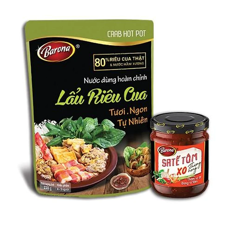 Nước Dùng Lẩu Riêu Cua Barona 230g tươi ngon chuẩn vị không cần nêm nếm và 1 hũ Sa tế Tôm XO Thượng hạng Barona 100g