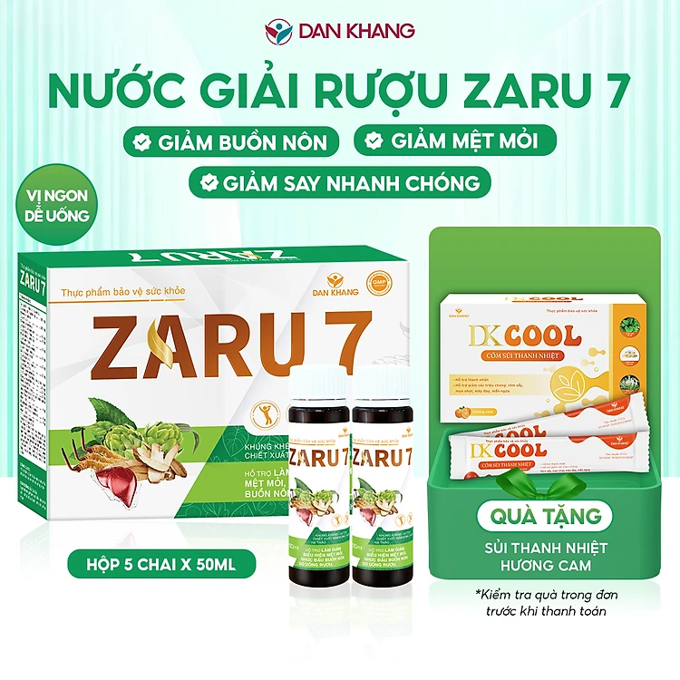 Nước Giải Rượu ZARU 7 Thanh Nhiệt Mát Gan Hỗ Trợ Giảm Mệt Mỏi, Nhức Đầu, Buồn Nôn Do Rượu Bia Hộp 5 Chai