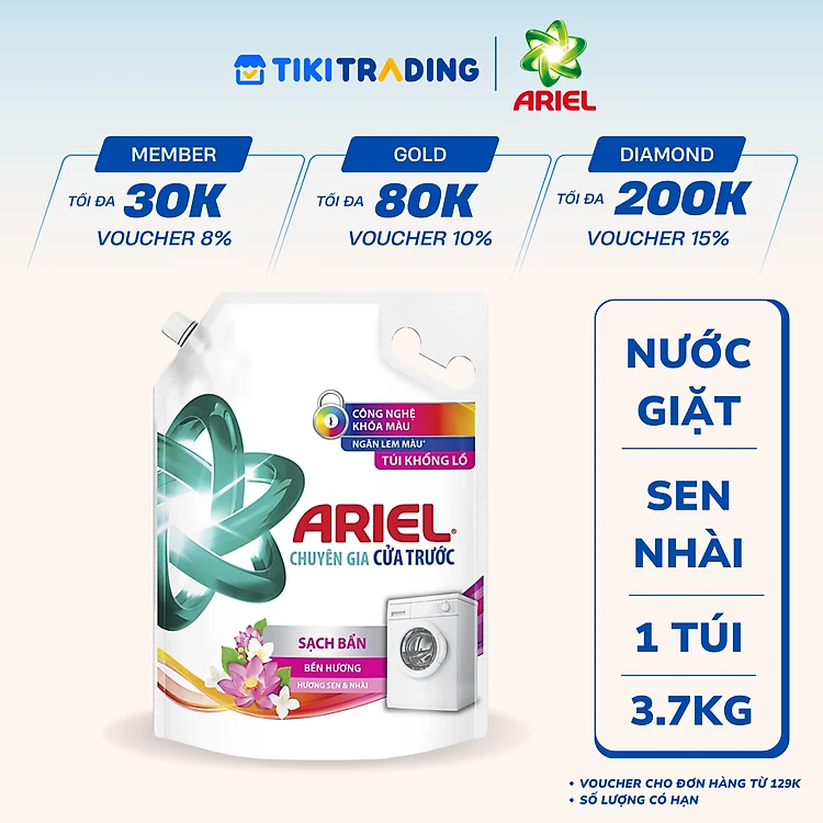 Nước Giặt ARIEL Cửa Trước Bền Màu Hương Sen Nhài Túi 3.7 KG