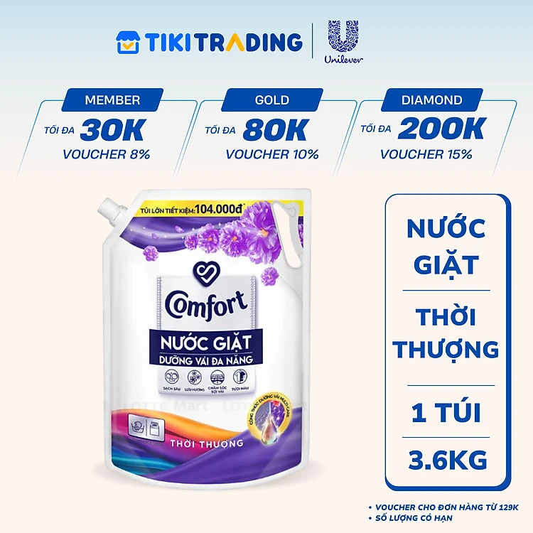Nước Giặt Comfort Dưỡng Vải Đa Năng Hương Thời Thượng Túi 3.6KG