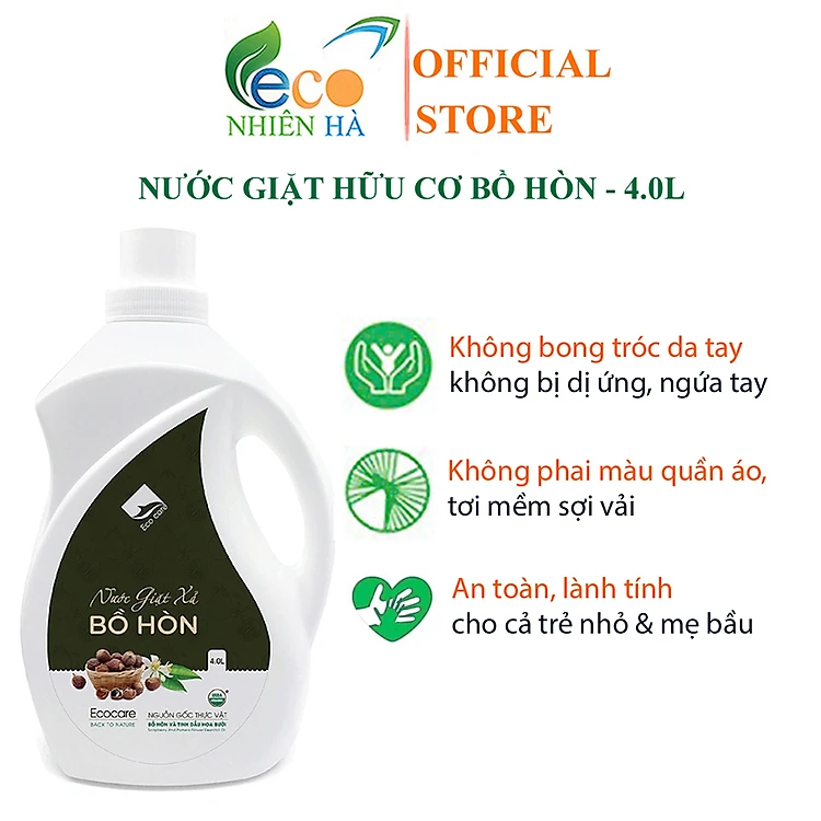 Nước giặt xả ECOCARE 4L tinh dầu bưởi, nước giặt hữu cơ an toàn cho bé, không hại da tay