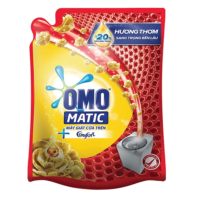 - Nước Giặt OMO Matic Comfort Tinh Dầu Thơm Cho Máy Giặt Cửa Trên (2.3Kg/Túi) được thiết kế phù hợp cho máy giặt cửa trên. với công thức màn chắn kháng bẩn Polyshield, giúp đánh bay vết bẩn cứng đầu mà không phải vò tay trước, kết hợp với tinh dầu thơm Comfort giúp quần áo luôn thơm ngát hương hoa.