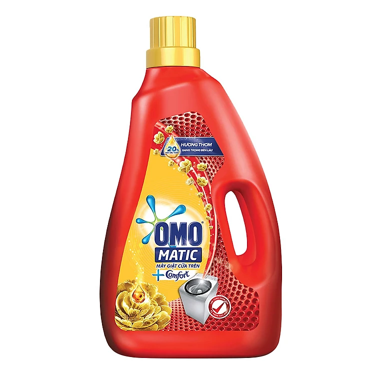 - Nước Giặt OMO Matic Comfort Tinh Dầu Thơm Cho Máy Giặt Cửa Trên (3.7Kg) được thiết kế phù hợp cho máy giặt cửa trên. với công thức màn chắn kháng bẩn Polyshield, giúp đánh bay vết bẩn cứng đầu mà không phải vò tay trước, kết hợp với tinh dầu thơm Comfort giúp quần áo luôn thơm ngát hương hoa.