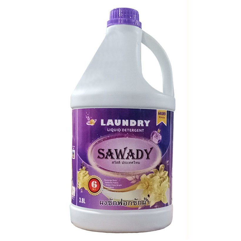- Nước giặt xả 6 in 1 Sawady Thái Lan 3,8L được áp dụng công nghệ sản xuất tiên tiến với tinh dầu nước hoa được nhập khẩu. Đây chắc chắn sẽ là sự lựa chọn hàng đầu cho những bà nội trợ trong công việc giặt giũ hàng ngày: