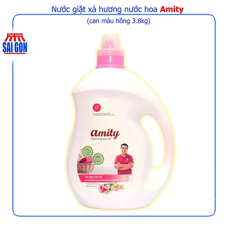 Nước Giặt Xả Amity hương nước hoa can 3.8kg kết hợp 2 tính năng vượt trội cho các nội trợ gia đình