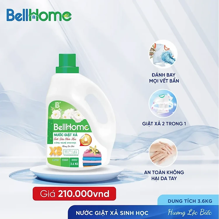 Nước Giặt Xả Công Nghệ Sinh Học Bell Home Xanh Hương Lộc Biếc 3,6KG