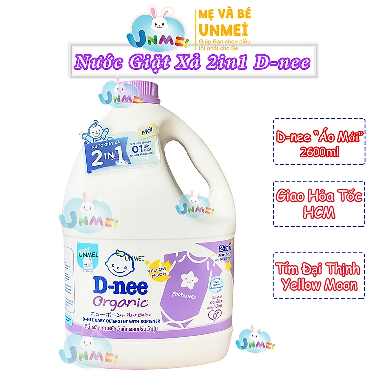 Nước Giặt Xả Quần Áo D-nee Tím Yellow Moon Phiên Bản 2in1 Mới 2600ml - Dnee Chính Hãng Đại Thịnh