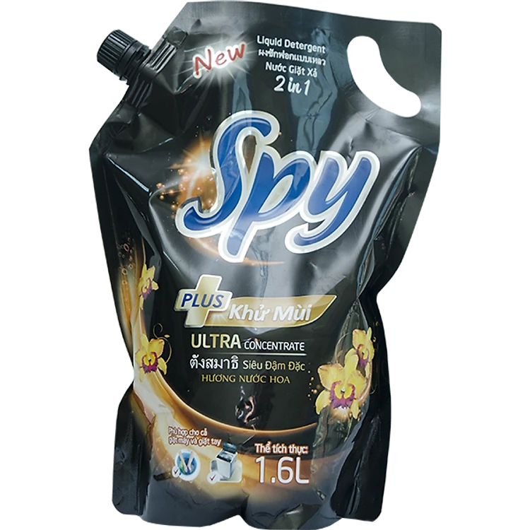 - Nước Giặt Xả Spy Plus - Vàng (1.6L / Túi) là dòng sản phẩm cao cấp của thương hiệu nước giặt xả SPY "Dù trời có mưa cả tuần thì áo quần cũng vẫn thơm ngát" với công thức chứa thành phần diệt khuẩn, ngăn ngừa sự phát triển của vi khuẩn gây mùi.