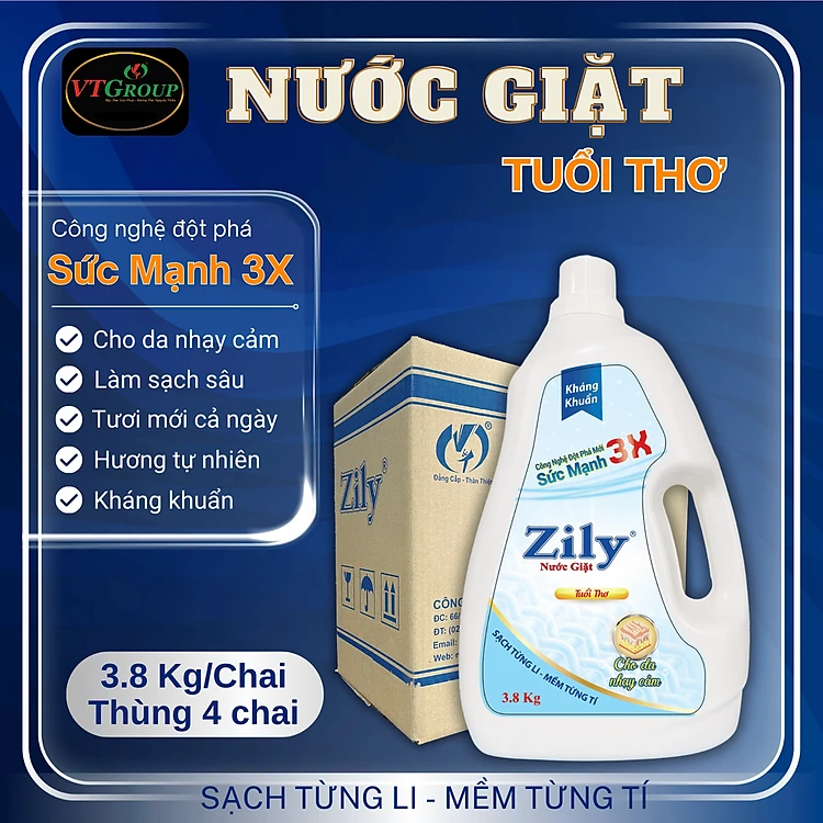 Nước Giặt Zily 3.8 Kg (4 Chai/thùng) - Tặng 5 Dây Xả Vải Zily ( 10 Gói/Dây )