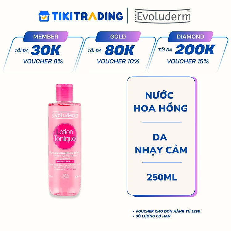 Nước hoa hồng Evoluderm se khít lỗ chân lông, dưỡng ẩm & làm sạch 250ml