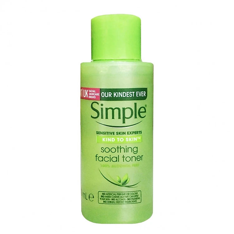 - Simple Kind To Skin Soothing Facial Toner là loại nước cân bằng da không chứa cồn được rất nhiều cô gái ưa thích lựa chọn nhờ khả năng làm sạch, nuôi dưỡng và cân bằng độ pH tốt cho da mà không hề gây kích ứng.
